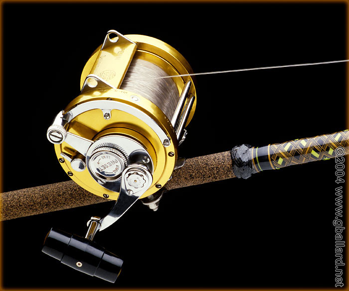 Gary G. BALLARD Studio, San Diego commercial catalog product photographer, digital or film, expert color management, on location or in studio. Pre-press and Internet savvy, digital Photoshop expert. Fast digital retouching, enhancements, art direction, graphic design and digital production. Penn reel shot in studio on medium format Mamiya 6x7 camera; product catalog photo production Penn 50W (propped and styled by rod builder). |